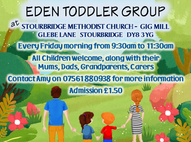 A new venture has started for our Church, in the room formerly occupied by Busy Bees. We now host The Eden Toddler Group - a weekly playgroup, held each Friday from 9:30am to 11:30am. All Children are welcome, along with their Mums, Dads, Grandparents and Carers, and a session costs just £1.50.